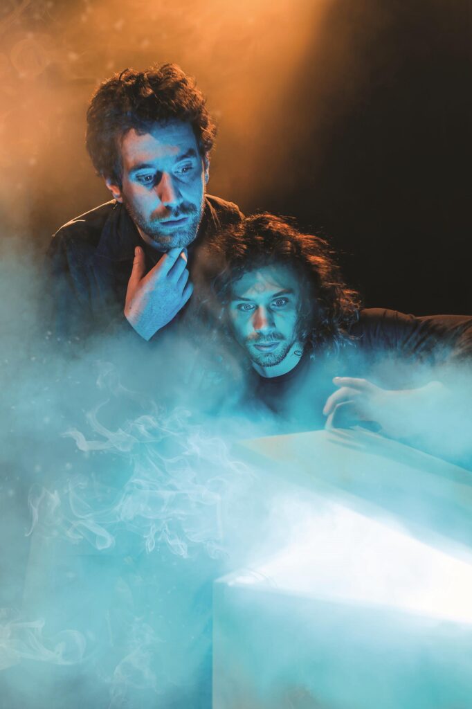 L’aspect comique ravit : les deux maestros, Kévin Arleri et Laury Chanty, sont intrigués par des cubes et leurs réactions face à l’inconnu ravissent. Pas une seule parole n’est prononcée et pourtant chacun comprend : les rires fusent, récompensant le jeu inspiré des comédiens magiciens. Le moment où Laury Chanty s’agite ou reste figé en fonction de ce que fait son partenaire est un moment fort de la représentation. On se croirait dans un cartoon.