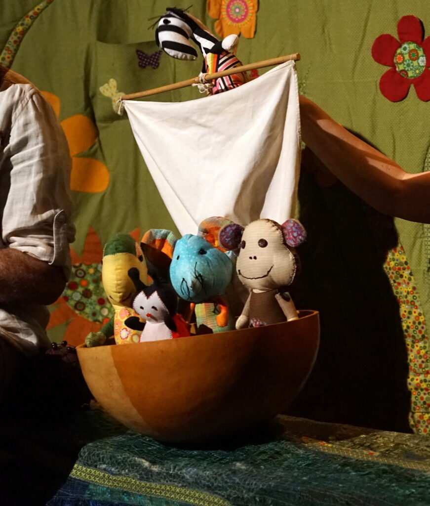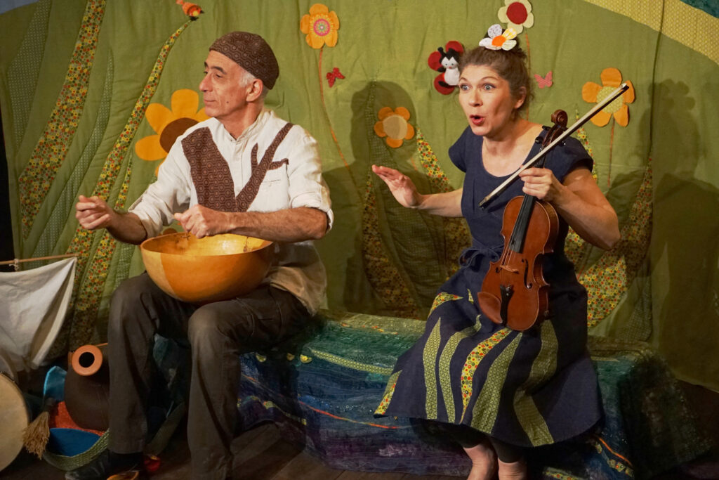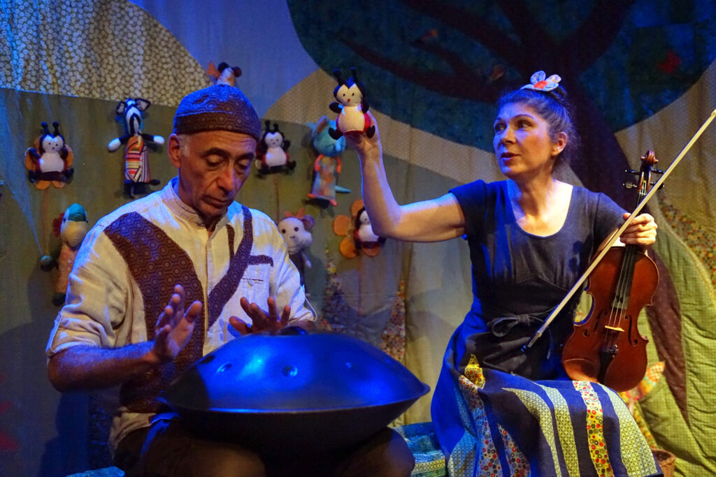 Les deux artistes ont l’art d’instaurer un climat rassurant, joyeux tout en les éveillant à la musique, grâce au recours à des instruments de musique de plusieurs contrées. Les bambins participent volontiers, reprenant les comptines traditionnelles dont les paroles ont été adaptées au conte, à l’exception de Bateau sur l’eau.