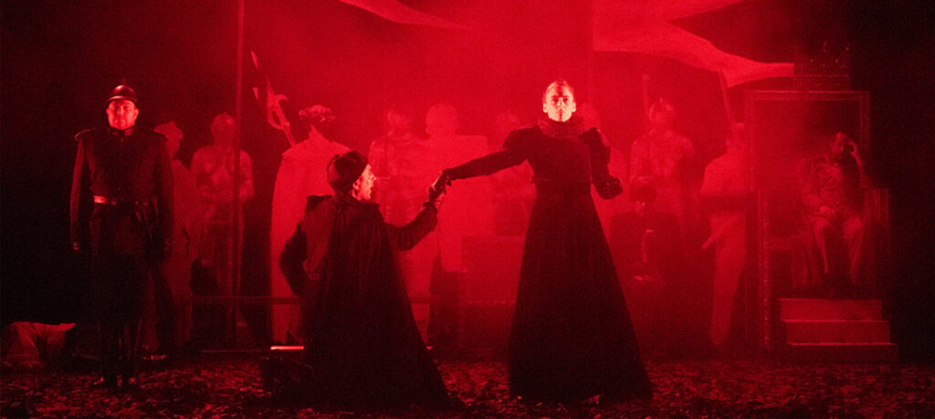 Le seul personnage féminin humain, Lady Duncan, est impitoyable, plus terrible que tous les hommes, elle exécute de sang-froid un soldat de façon assez inattendue dans la mise en scène audacieuse de Jérémie Louet. Elle compte les têtes qui tombent avec un plaisir non dissimulé, elle aguiche Macbett de façon ostentatoire, ce parti pris de la mise en scène est tout à fait dans l’esprit de l’œuvre de Ionesco.